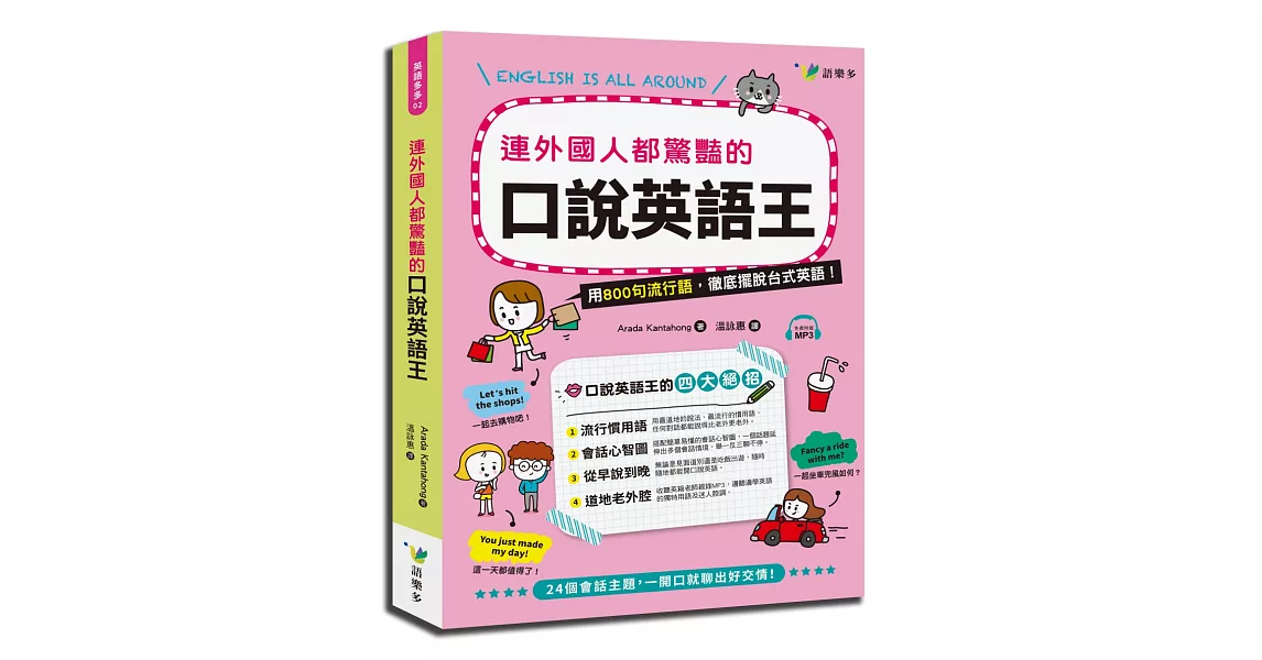 商品描述: 書名:連外國人都驚艷的口說英語王(附1MP3),語言:繁體中文,ISBN:9789869534932,頁數:368,出版社:語樂多文化,作者:Arada Kantahong,譯者:溫詠惠,出版日期:2017/12/27,類別:語言學習