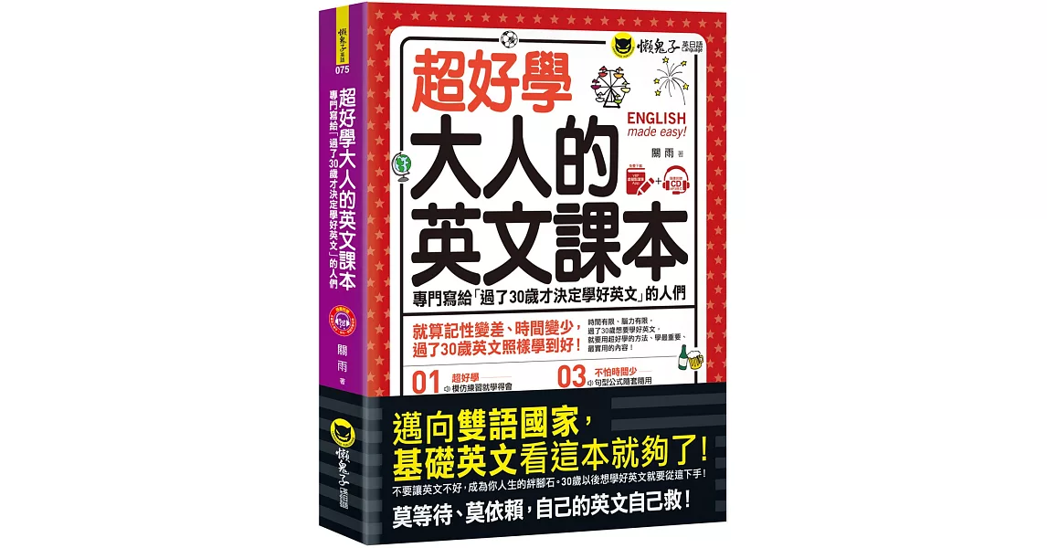 博客來-超好學大人的英文課本:專門寫給「過了30歲才決定學好英文」的人們(免費附贈虛擬點讀筆APP+1CD)訂購網址: https://www.books.com.tw/exep/assp.php/87926/products/0010821635?utm_source=87926&utm_medium=ap-books&utm_content=recommend&utm_campaign=ap-201905
