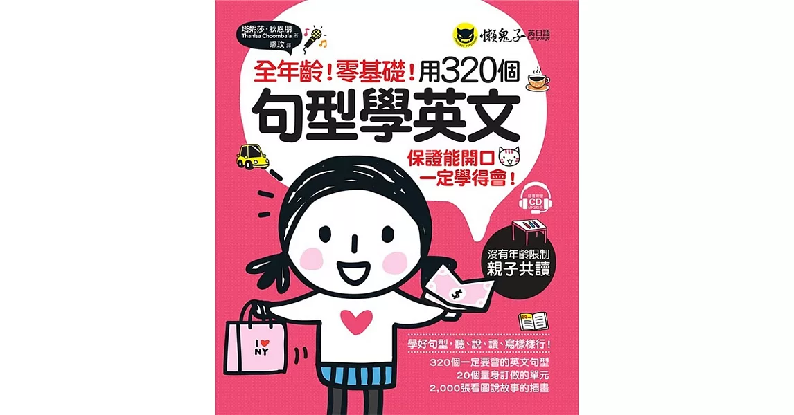 博客來-全年齡!零基礎!用320個句型學英文(附1CD)訂購網址: https://www.books.com.tw/exep/assp.php/87926/products/0010778046?utm_source=87926&utm_medium=ap-books&utm_content=recommend&utm_campaign=ap-201905