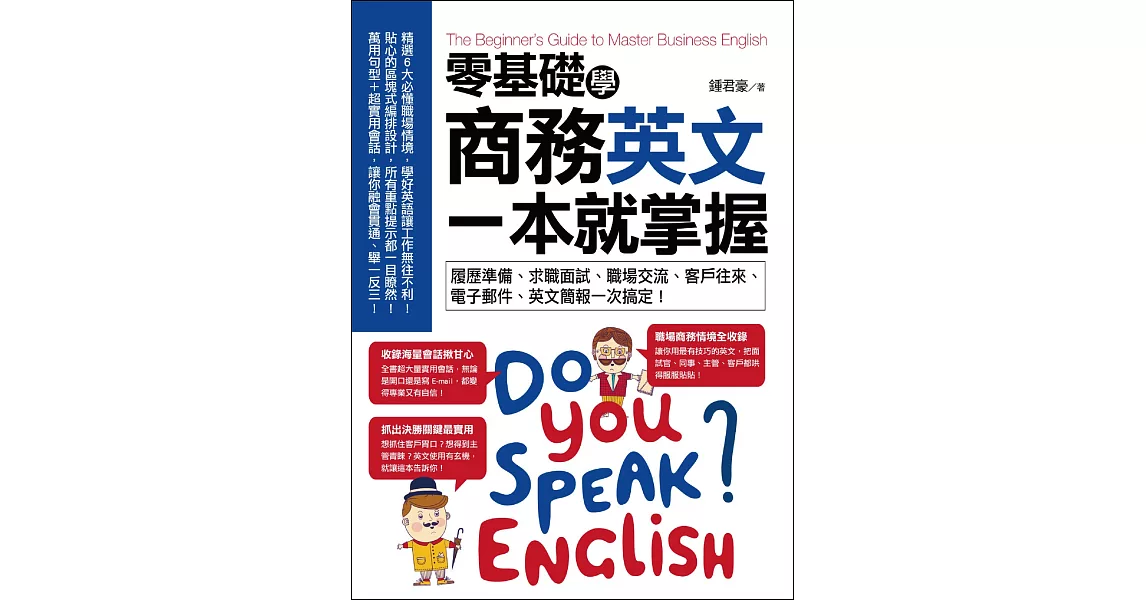 博客來-零基礎學商務英文,一本就掌握:履歷準備、求職面試、職場交流、客戶往來、電子郵件、英文簡報一次搞定!訂購網址: https://www.books.com.tw/exep/assp.php/87926/products/0010817437?utm_source=87926&utm_medium=ap-books&utm_content=recommend&utm_campaign=ap-201905
